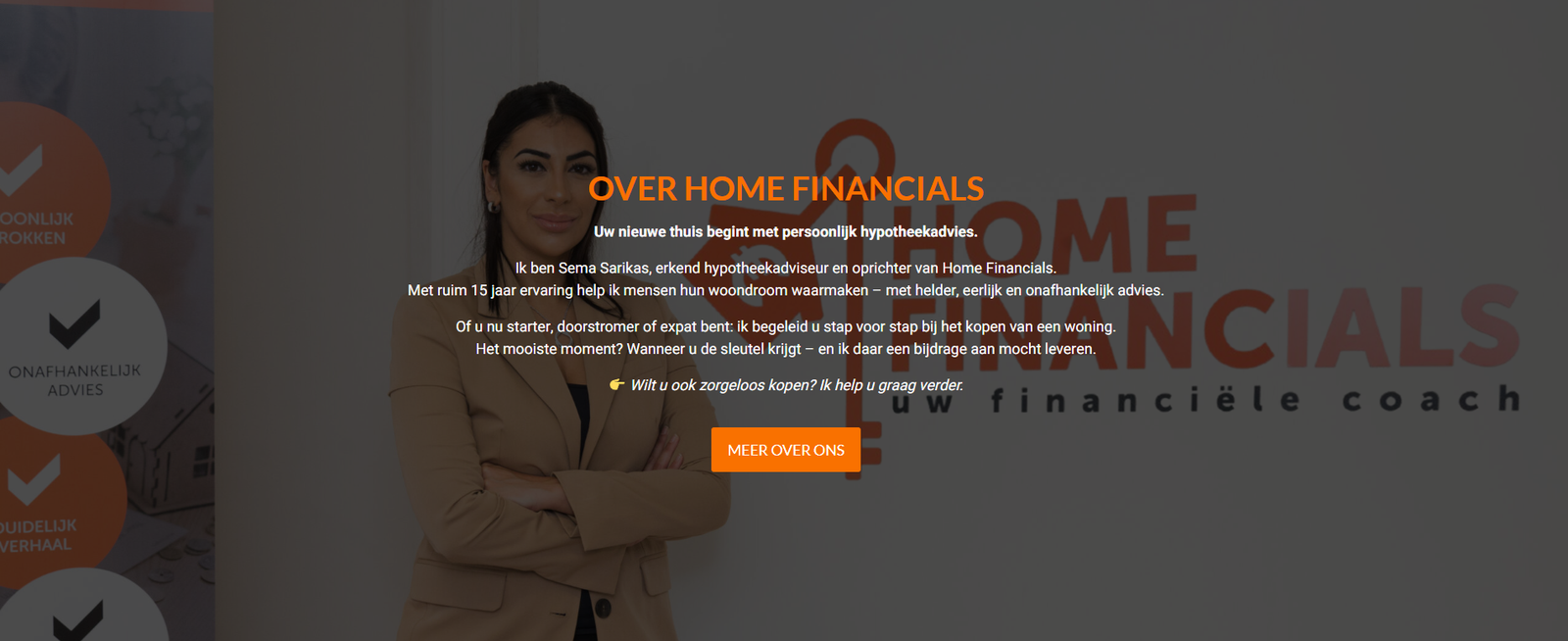 A professional financial services website developed for Home Financials, a Netherlands-based mortgage and financial advisory company. The website was designed to clearly present the company’s independent mortgage advisory services while helping potential clients easily understand their options when buying a home.