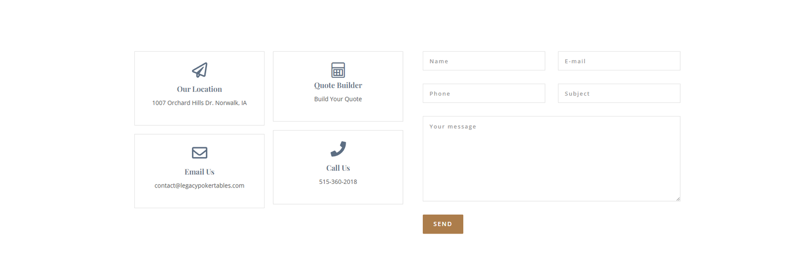 A modern product website developed for Legacy Poker Tables, a company specializing in handcrafted custom poker tables built in Central Iowa. The website was designed to showcase premium gaming tables, highlight product craftsmanship, and provide customers with an easy way to explore customization options and request a quote.